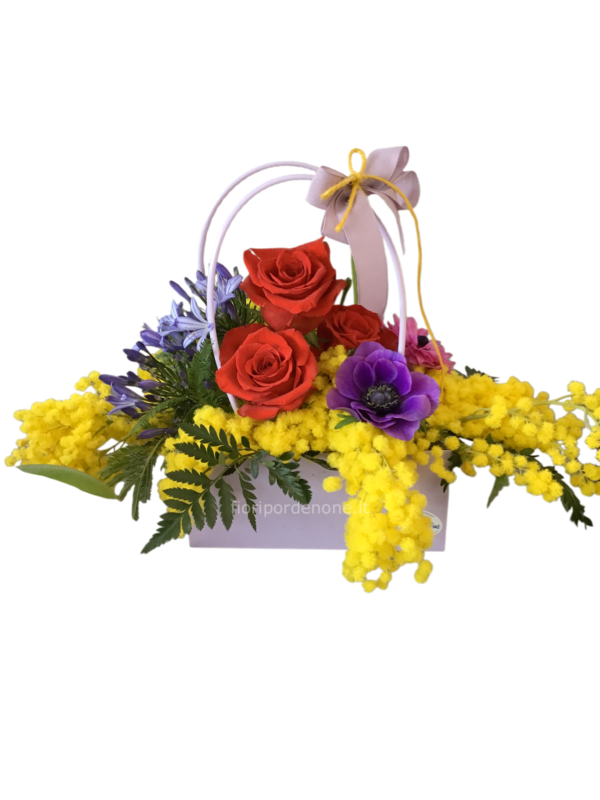 Borsetta con mimosa e fiori mix