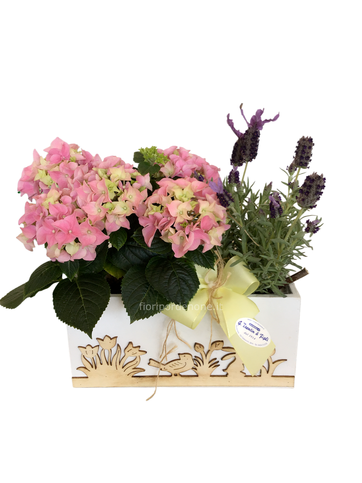 | Cassetta con ortensia e lavanda stoechas Cod. 126835 | € 27,00 | Quantità : | |