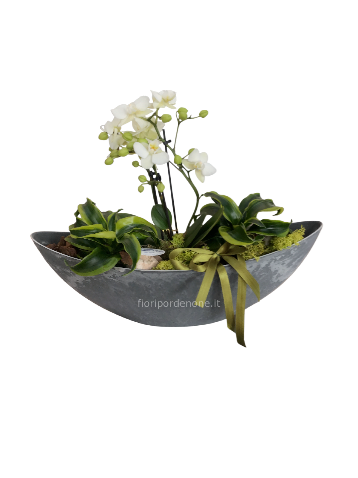 | Composizione barchetta con orchidea Cod. 117764 | € 38,00 | Quantità : | |