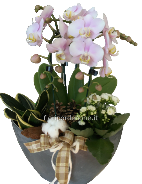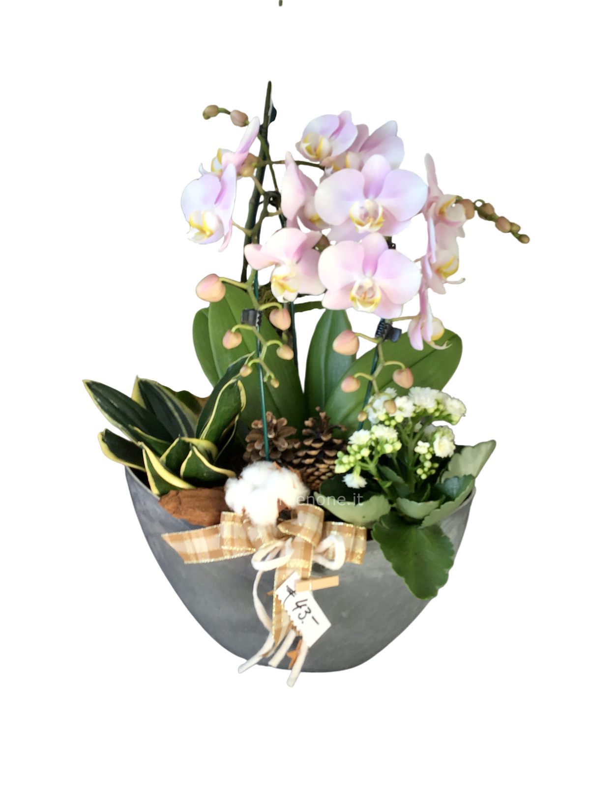 | Composizione ovale con orchidea e piante da interno Cod. 121910 | € 44,00 | Quantità : | |